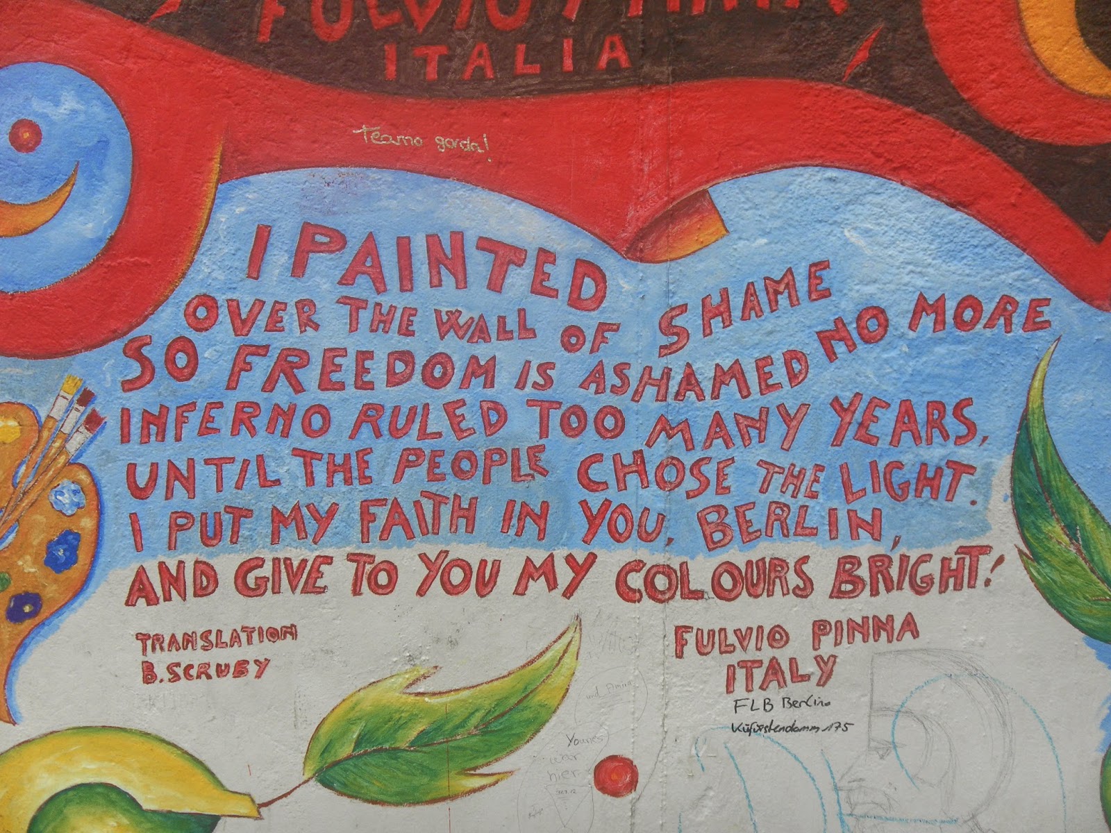 Un indispensable en una visita a Berlín es su muro. Separó durante 28 años las dos Alemanias: la República Federal Alemana de la República Democrática Alemana. El 9 de noviembre de 1989 cae el muro y familias y amigos que habían estado separados forzosamente volvieron a unirse.