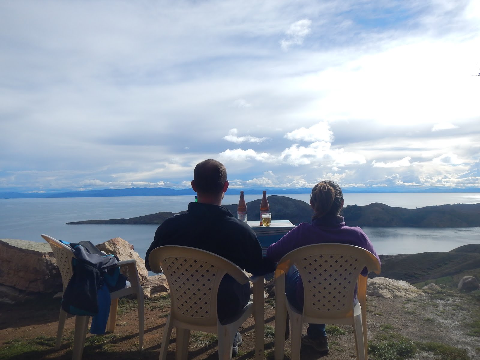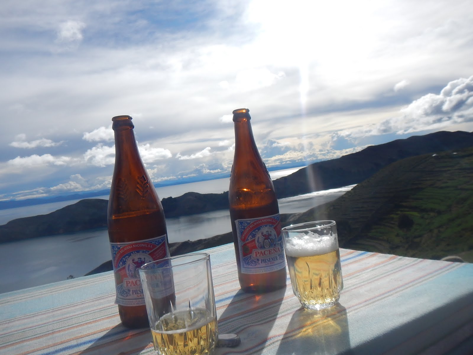 Descargamos el equipaje y esa misma tarde nos fuimos a dar una vuelta por la zona sur. Esta zona tiene muchas casitas y caminos para recorrer la zona, hay restaurantes y alguna que otra minitienda donde poder comprar agua o algo para comer, pero todo muy básico. También encontramos a mujeres y niñas vendiendo artesanía como jerseys de alpaca, pulseritas, manteles… todo a muy buen precio. Lástima que no nos cabía en las mochilas! Como la comida no es nada cara, nosotros cenamos en un restaurante, y hasta nos tomamos unas cervezas bolivianas!
