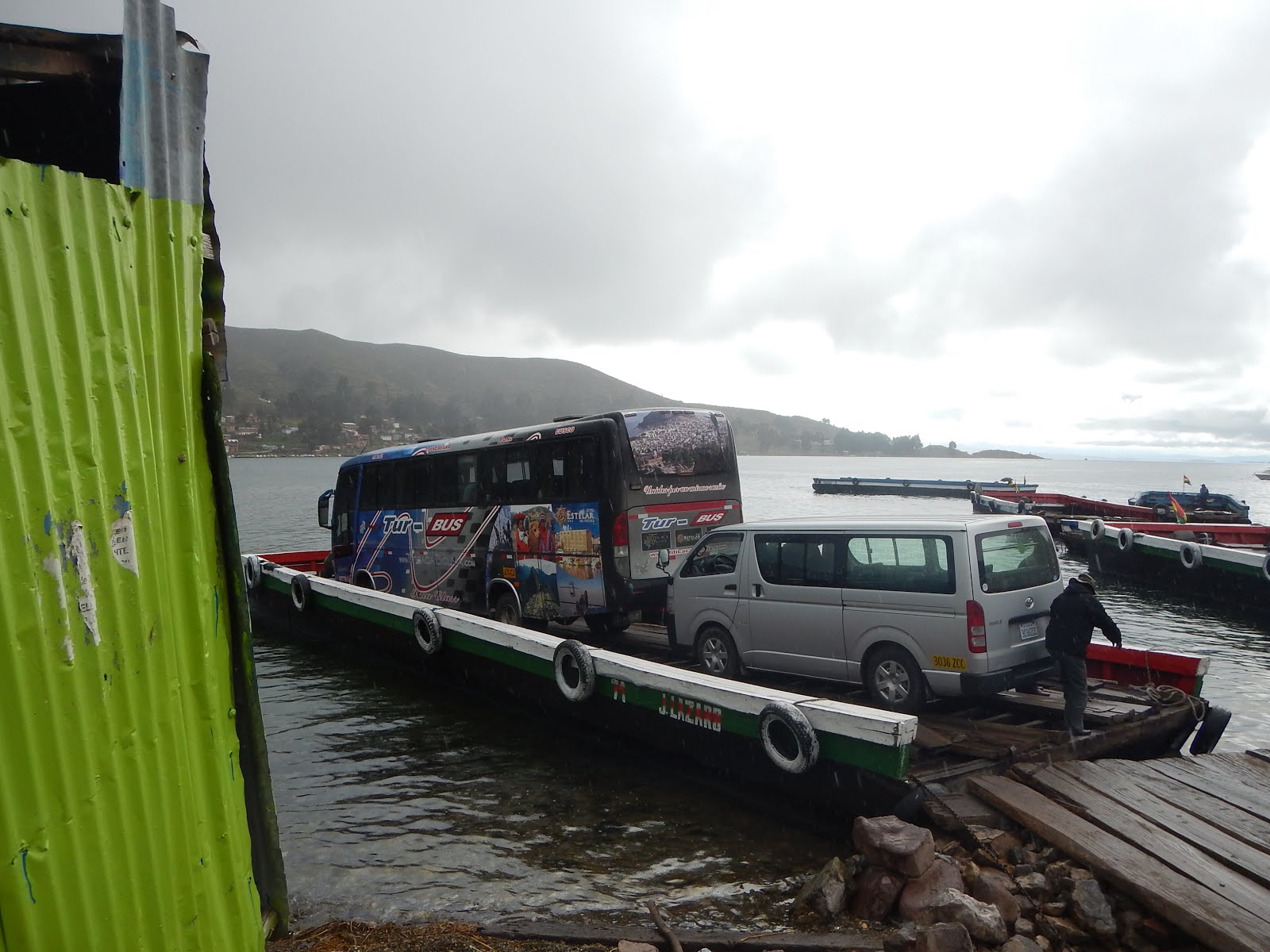 El autobús sale desde La Paz y llega hasta San Pedro de Tiquina. Ahí hay que cruzar un estrecho, donde el bus se monta en un barco y la gente se baja y sube en otro. Esta es la forma más rápida de llegar a Copacabana.