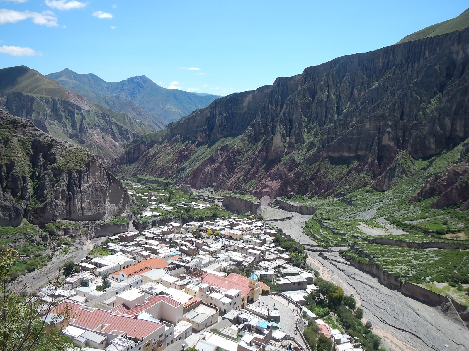 Desde Humahuaca se tardan unas 3 horas en llegar a través de acantilados y montañas de diferentes colores, un trayecto precioso en el que tienes que confiar en el talento para conducir del conductor del bus!! Después mil y una curva, acantilados y más de un «Ay que no lo cuento» llegamos a este pueblecito perdido entre montañas!