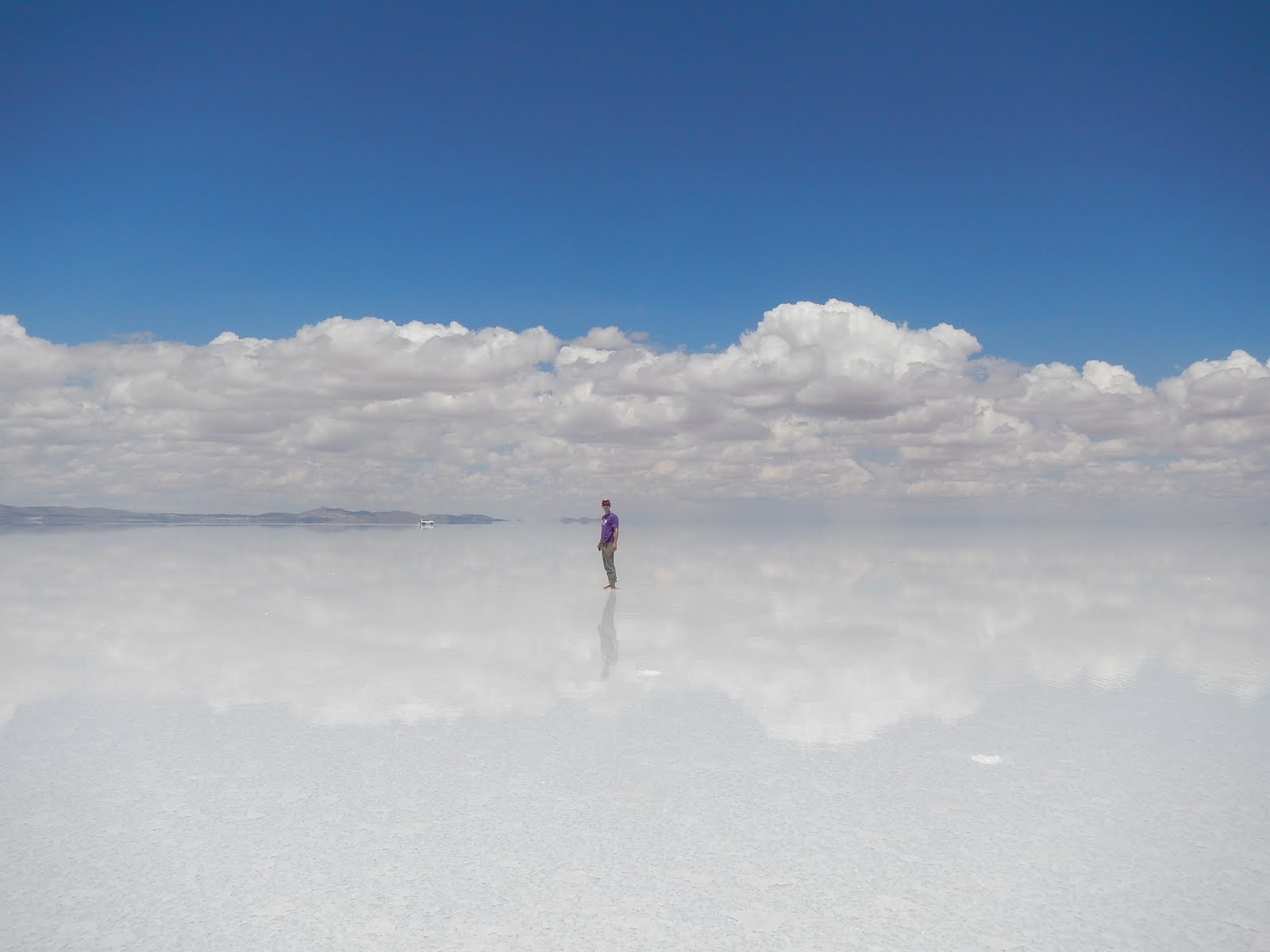 Volvimos al coche para irnos a la zona que está totalmente cubierta por agua, que no siempre se puede ver, depende de las lluvias. Pero poder verlo es una pasada… es como estar en en las nubes! Se consigue el reflejo del cielo, y parece que no tiene fin. Allí paramos a comer y estuvimos un buen rato sacando fotos!